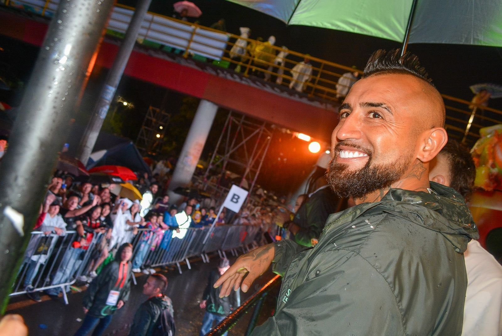#Viral ¡Una leyenda del fútbol en Colombia! El futbolista chileno Arturo Vidal apareció en el Salsódromo y disfrutó del primer día de la Feria de Cali. A pesar de la fuerte lluvia que se presentó en la capital del Valle del Cauca, el chileno se mostró entusiasmado y se dejó… pic.twitter.com/ZALch3kCG1